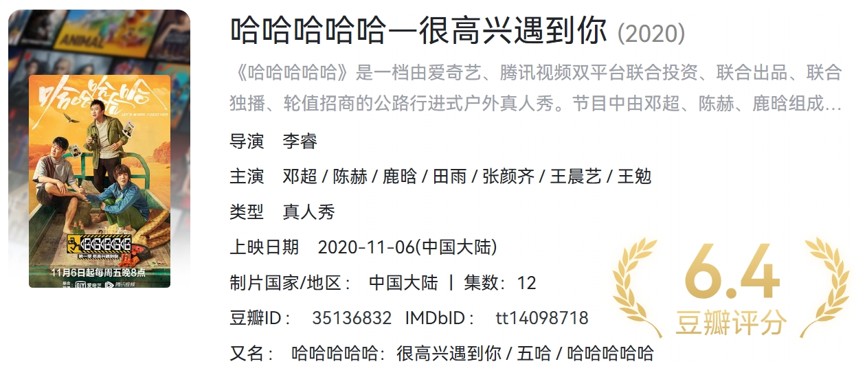 哈哈哈哈哈 第五季(持续更新中)合集 4K 国语中字 附1-4季 【约181.4GB】 栏目:综艺区 作者:羊毛部落 时间:2025-11-28 11:17:32   **简介:** 五哈系列综艺,影视平台付费节目,这里持续更新。。。 > [!success] **资源链接** > [https://pan.quark.cn/s/17e84b8619b5](https://pan.quark.cn/s/17e84b8619b5 "https://pan.quark.cn/s/17e84b8619b5") 版权声明:本站不存储任何实质资源,该帖为发布的网盘链接介绍帖。如您认为本站任何介绍帖侵犯了您的合法版权,请联系站长 ( QQ:1186810744 ) 进行投诉,我们将在确认本文链接指向的资源存在侵权后,立即删除相关介绍帖子!