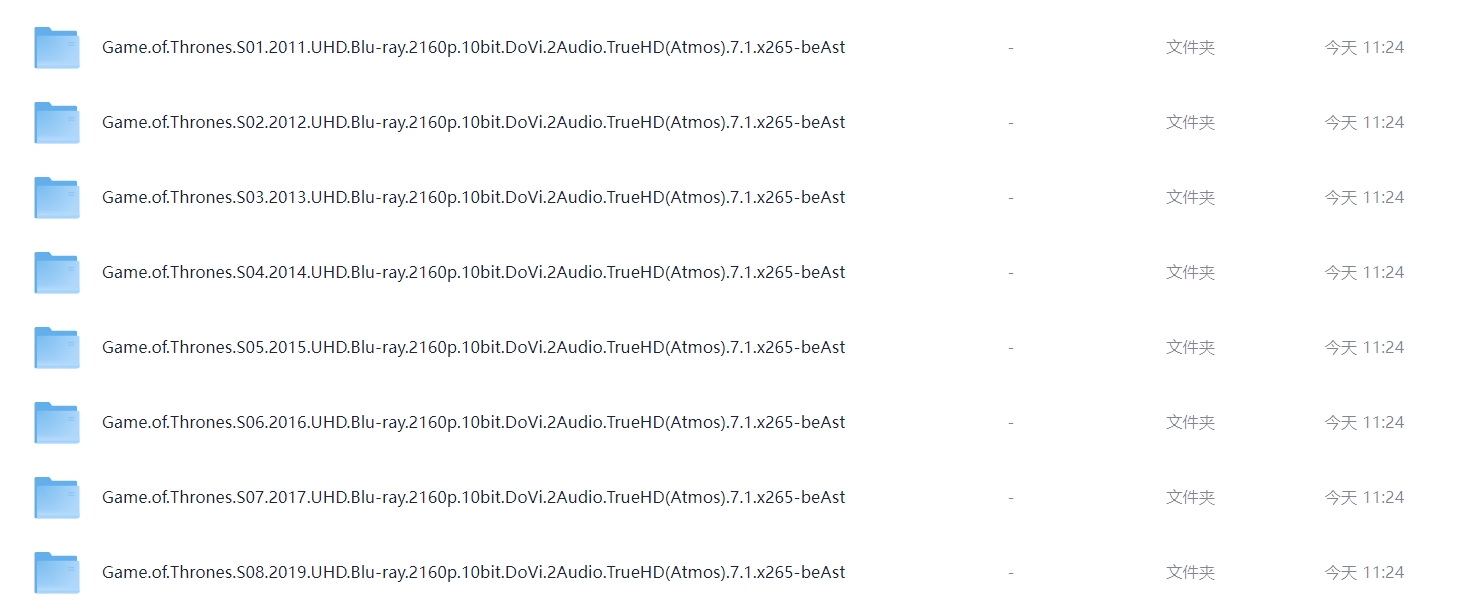 终极收藏《权力的游戏》全八季合集 【4K 蓝光HDR 杜比视界】【英简繁&双语特效SUP字幕】【1.03T】 栏目:剧集区 作者:羊毛部落 时间:2026-01-05 14:41:17     **简介:** 《权力的游戏》改编自美国作家乔治·R·R·马丁的奇幻小说《冰与火之歌》系列,讲述了在一个虚构的世界中分为两片大陆:位于西面的“日落国度”维斯特洛;位于东面的类似亚欧大陆。维斯特洛大陆边境处发现远古传说中早已灭绝的生物开始,危险也渐渐在靠近这里。这片大陆的临冬城主暨北境统领艾德史塔克家族也迎来了老友兼国王劳勃·拜拉席恩的来访。国王希望艾德·史塔克能担任首相一职,对抗企图夺取铁王座的叛军的故事。 该剧于2011年4月17日在美国播出。该剧在2015年第67届艾美奖中破纪录斩获12项大奖,包揽了最佳剧情、导演、编剧、男配等大奖。**2016年,该剧被选为被评为最佳电视剧,同时还获评最佳剧本和最佳导演,成为艾美奖有史以来获奖最多的剧情类电视剧。**2018年,获得第70届艾美奖最佳剧集奖。2019年9月,该剧被英国《卫报》评选为21世纪100部最佳电视剧,名列第7位。 **PS:很多人反应没有字幕,使用夸克自带的播放器无法显示,夸克无法识别软特效字幕,请下载或者挂载后使用专业播放器,电脑端推荐potplayer!** > [!success] **资源链接** > https://pan.quark.cn/s/dabe3224e295 版权声明:本站不存储任何实质资源,该帖为发布的网盘链接介绍帖。如您认为本站任何介绍帖侵犯了您的合法版权,请联系站长 ( QQ:1186810744 ) 进行投诉,我们将在确认本文链接指向的资源存在侵权后,立即删除相关介绍帖子!